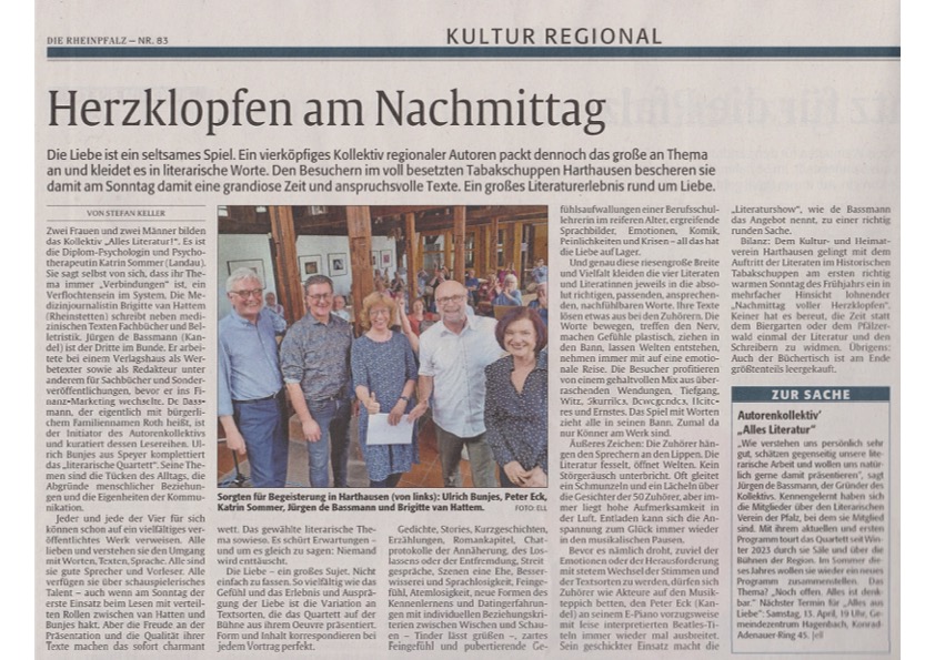 Autorinnen und Autoren aus unserer Region lesen ihre besten Geschichten rund um die schönste Sache der Welt. Romantische, humorvolle und nachdenkliche Texte über die wichtigste Sache der Welt – Zwei Stunden voller Herzklopfen!